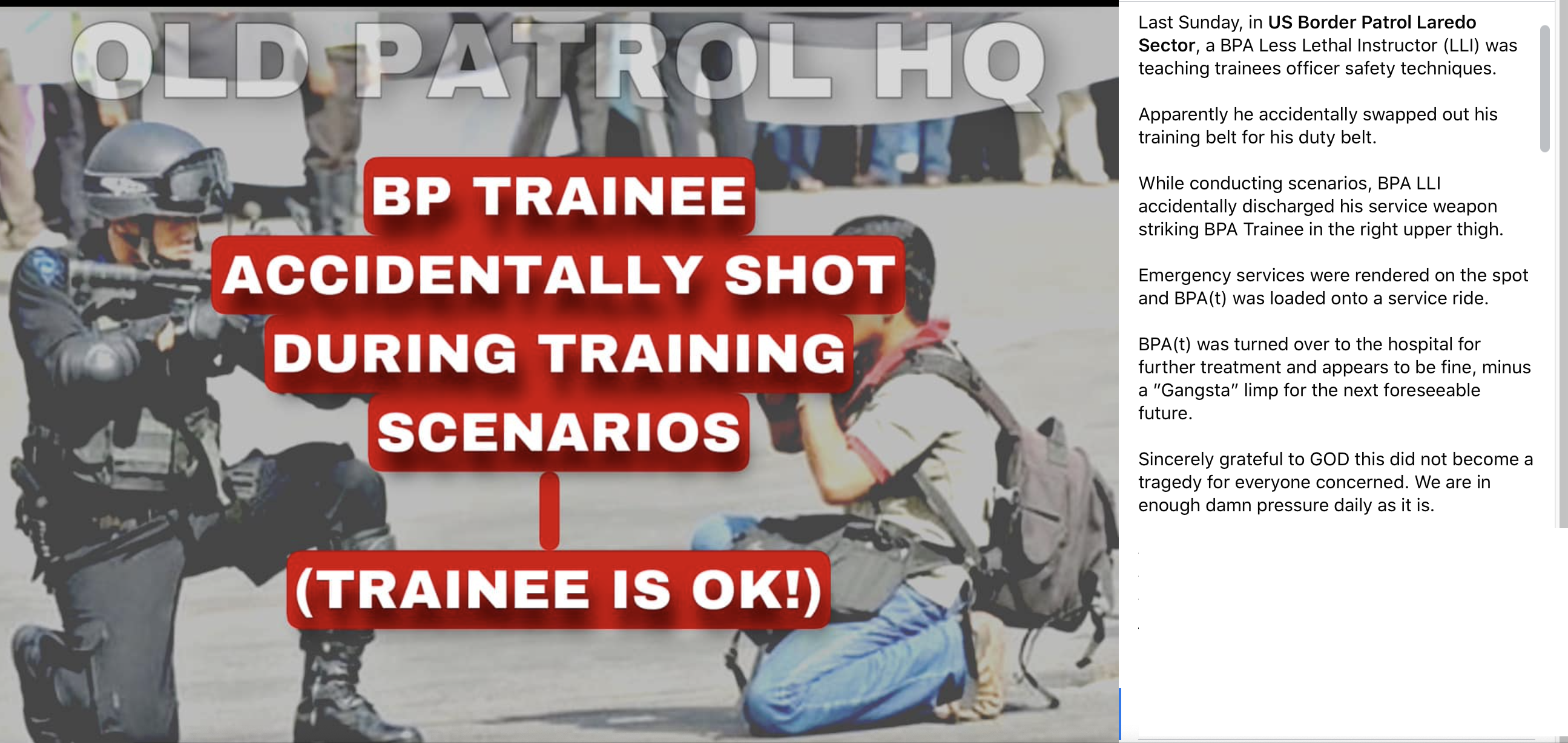 First inadvertent shooting during scenario training 2003 Jan 10, 2023 Share this:Tweet Share on WhatsApp (Opens in new window) WhatsApp Print (Opens in new window) Print